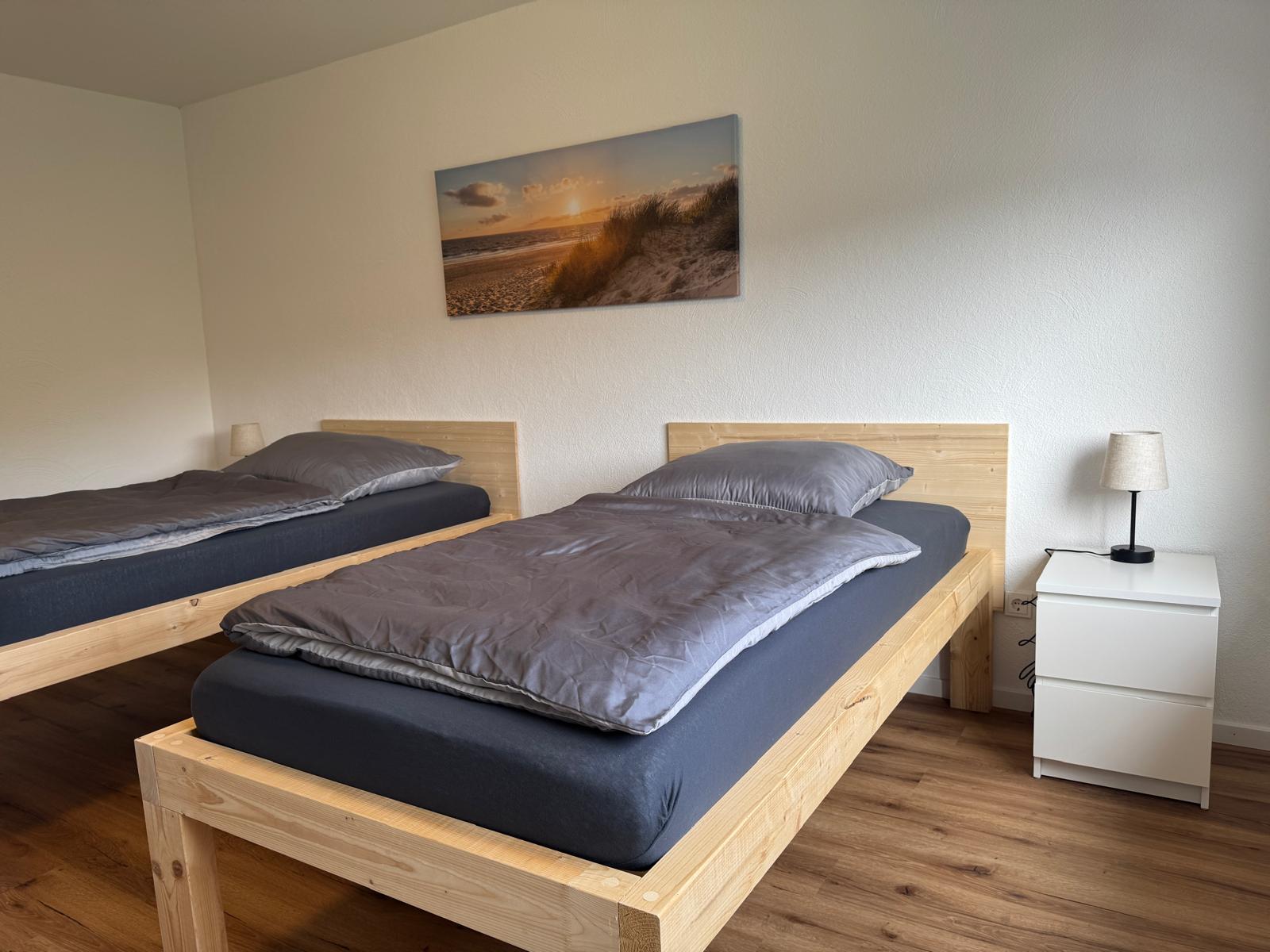 Wir vermieten ein komplettes Wohnhaus als Monteurzimmer mit 4 großzügigen Doppelzimmern – jeweils ausgestattet mit zwei Einzelbetten (1,00m x 2,00m), TV und kostenfreiem WLAN. Insgesamt finden hier bis zu 8 Personen bequem Platz.